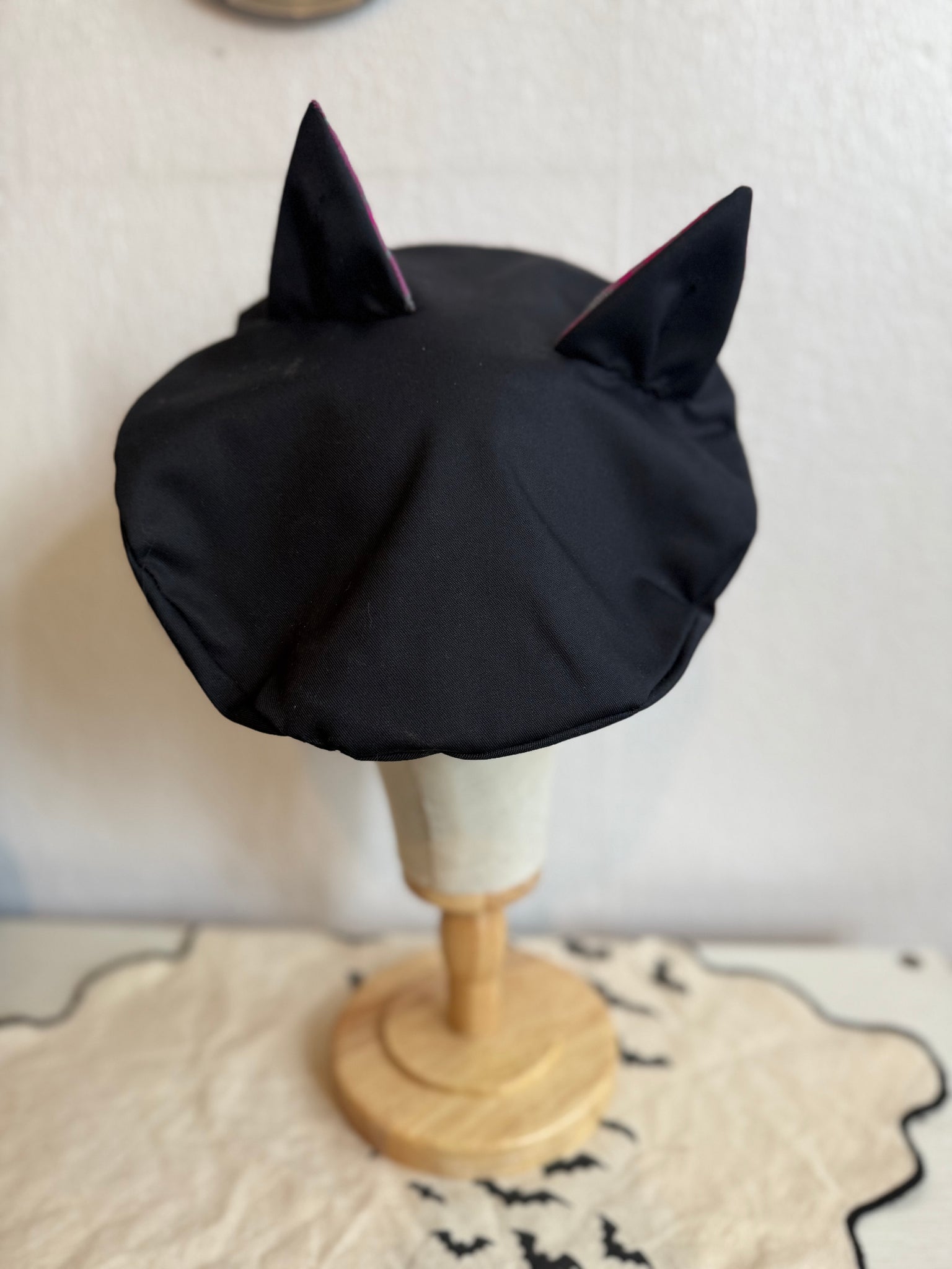 CAT BERET in Black with Pink Plaid (size 22”)