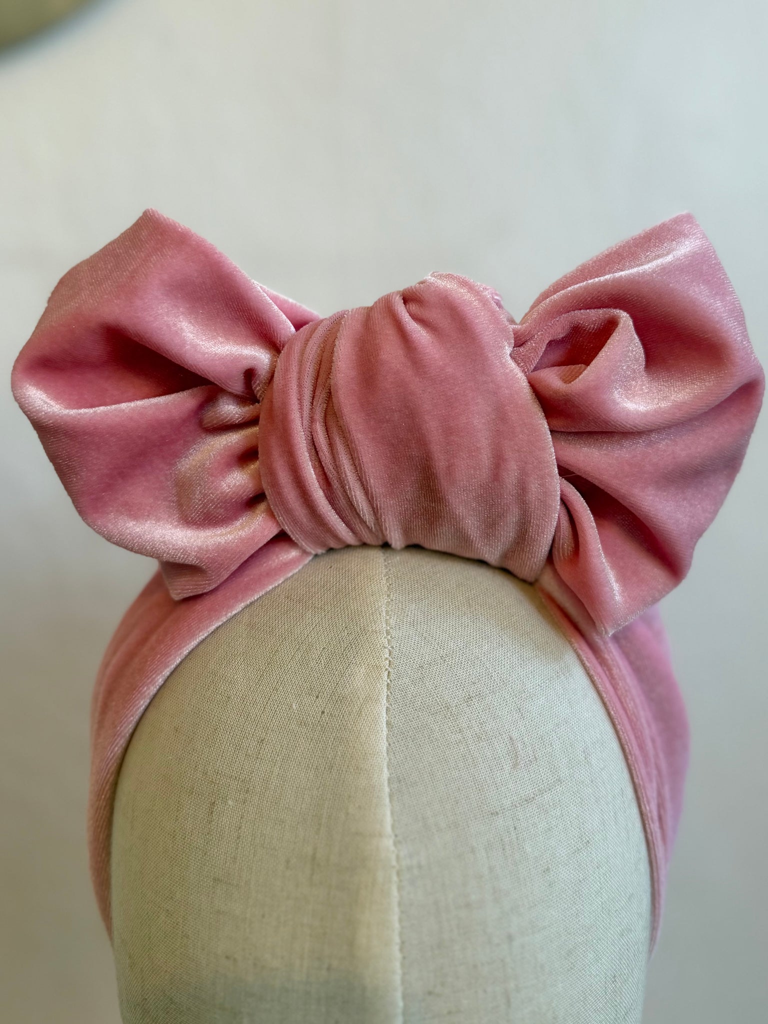 Baby Pink Velvet Vintage Style Pre-tied Headband with Bow Knot