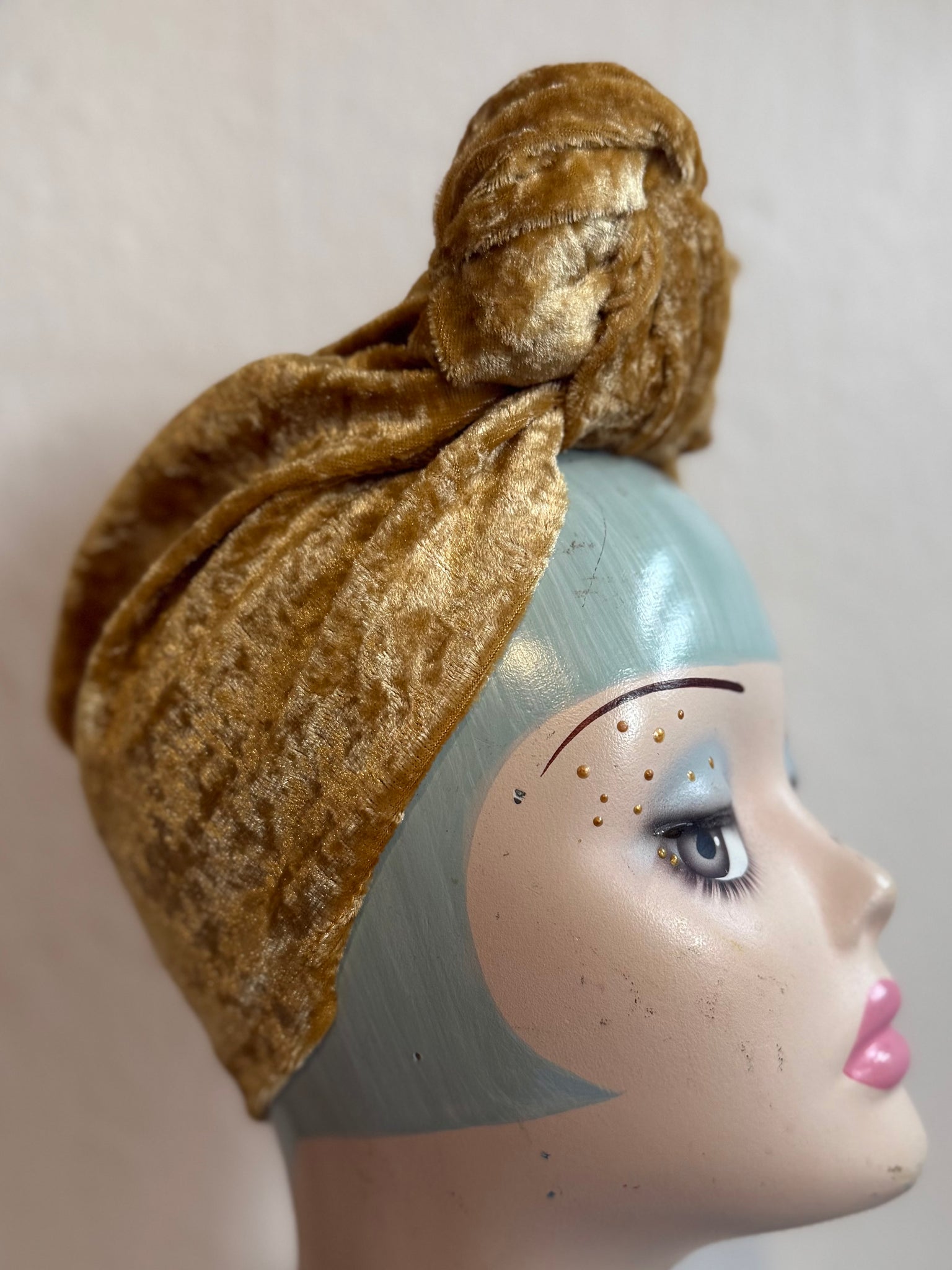 50% OFF SALE ITEM: Crushed Gold Velvet (Full Coverage) 1940s Style Pre-tied Turban
