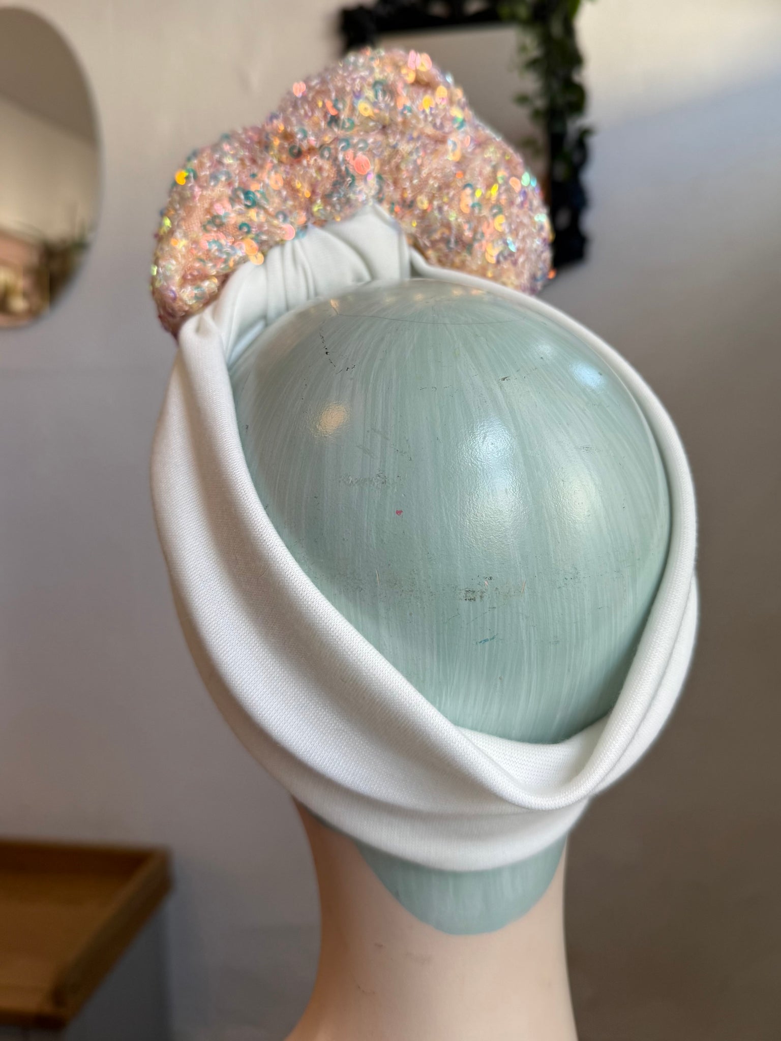 50% OFF SALE ITEM: SEQUIN KNOT Pre-tied Headband in White & Iridescence (large knot)