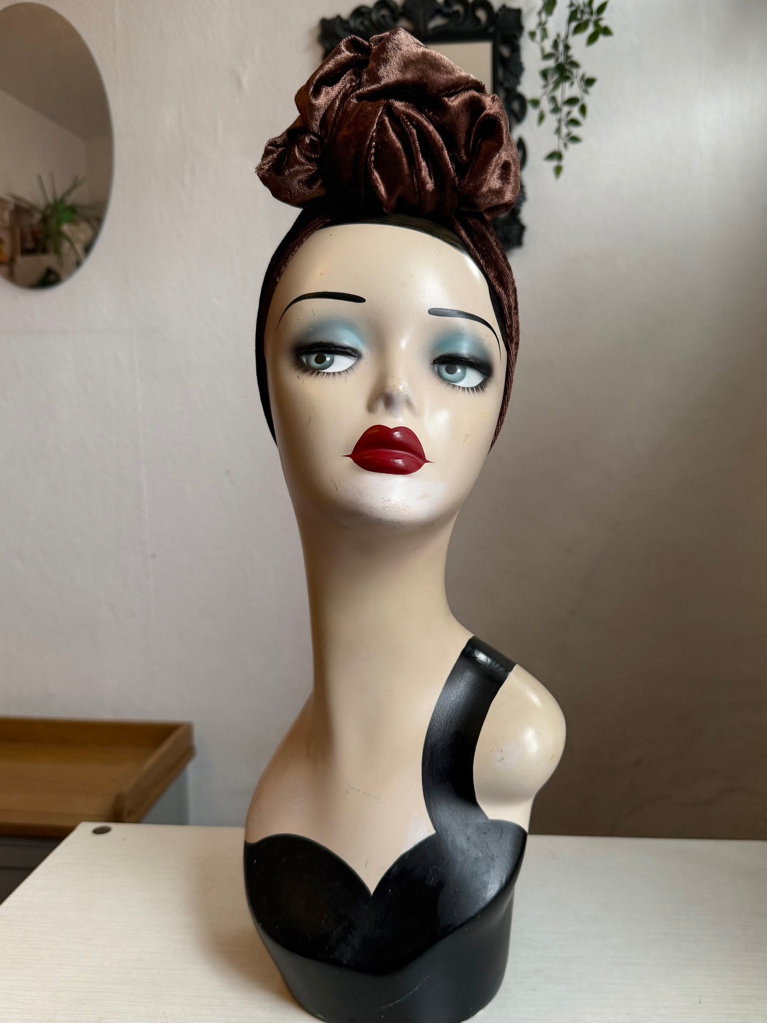 SLOUCHY KNOT Brown Crushed Velvet Pre-tied Vintage Style Headband