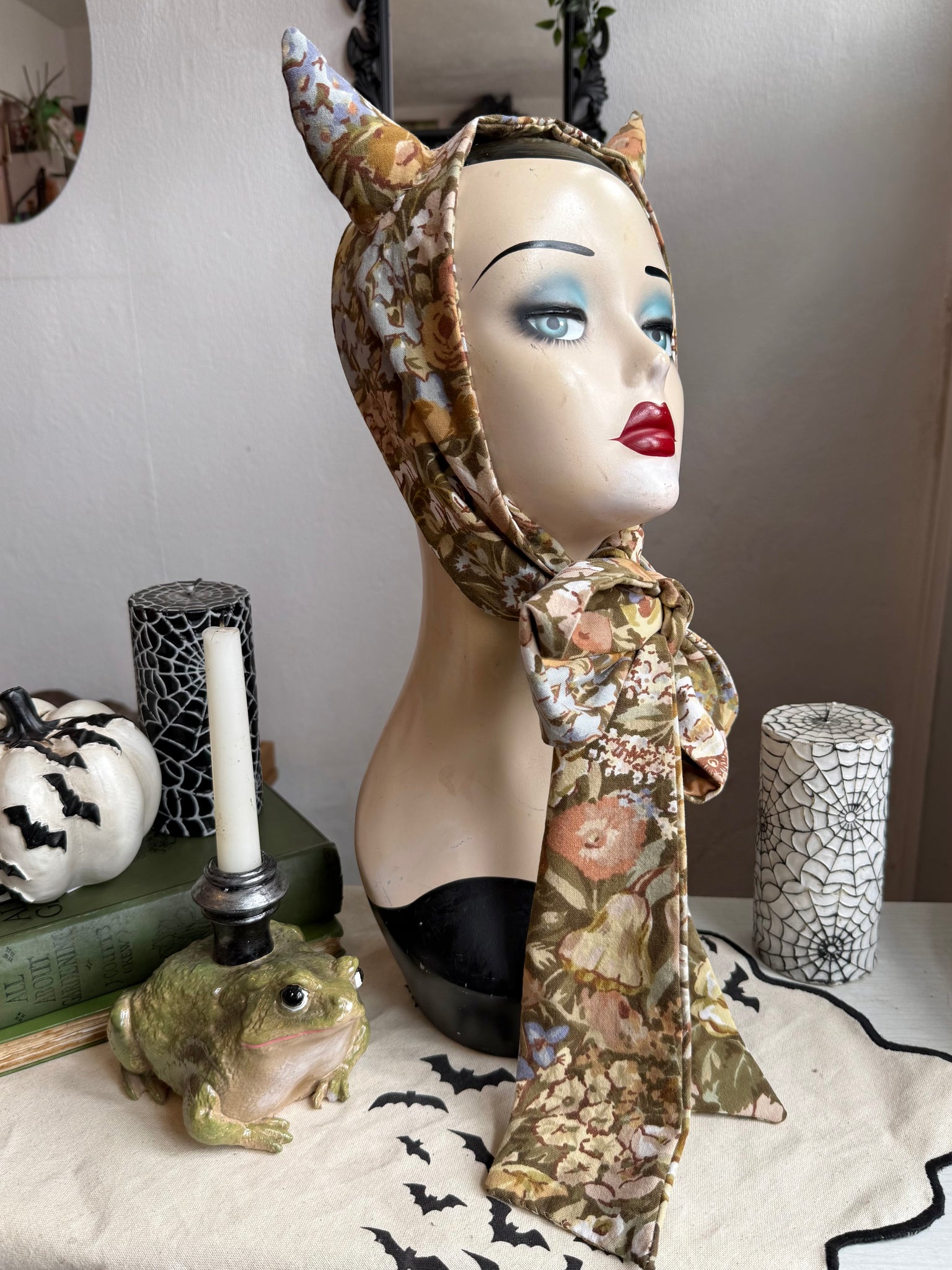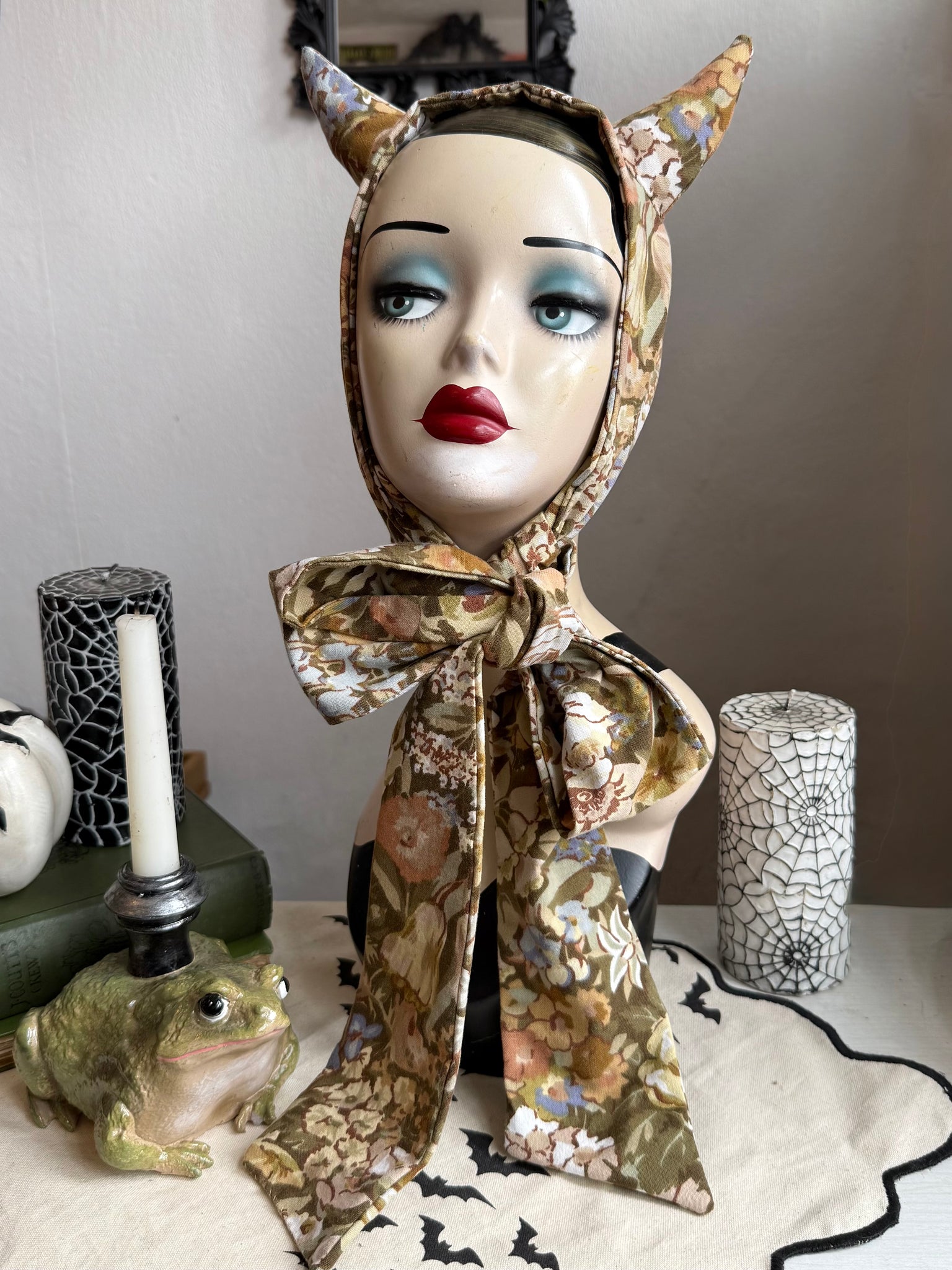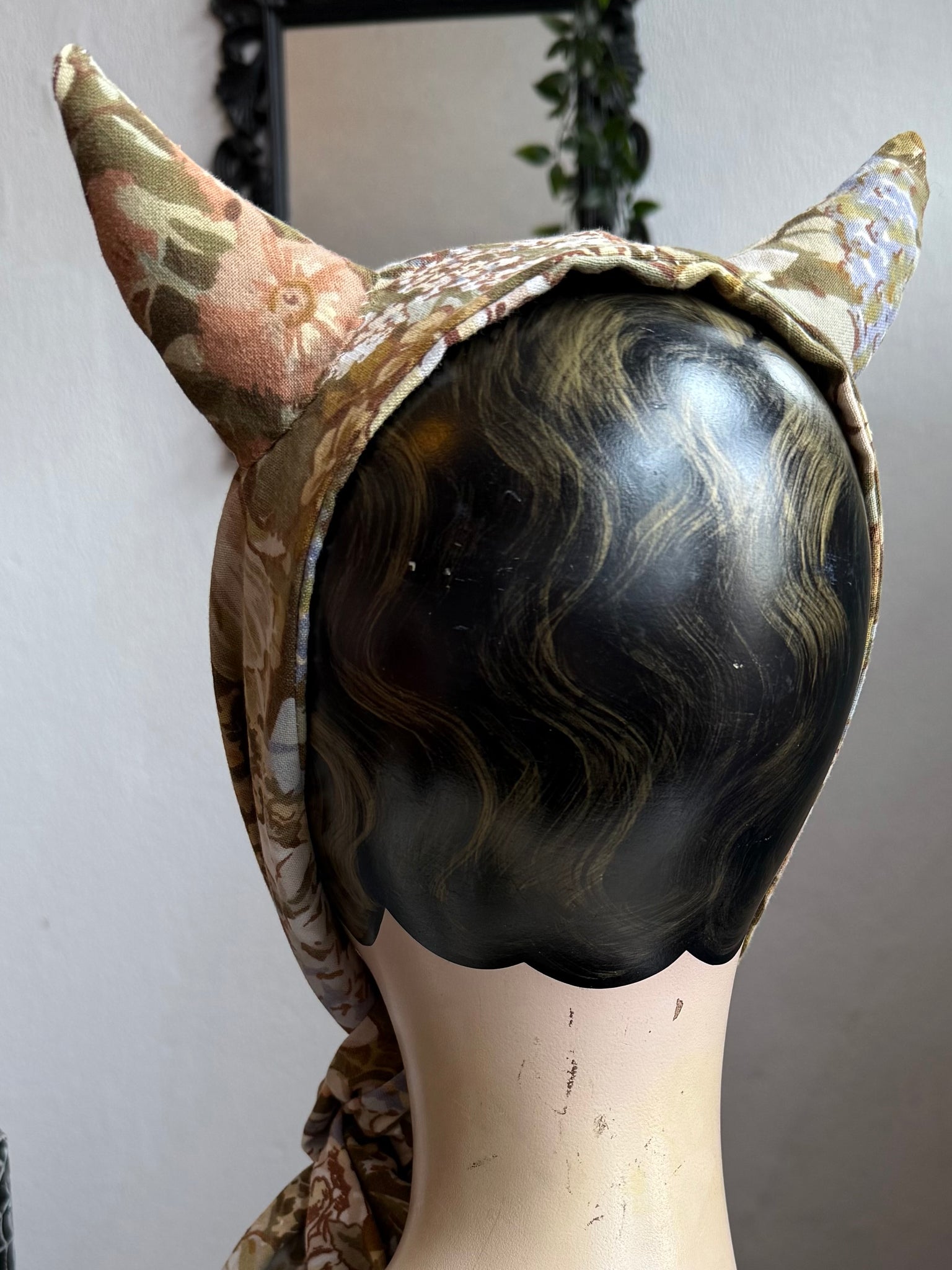 SARAH SPROUT COLLECTION: ‘Little Devil’ Vintage Devil Horns Headband in Upcycled Brown Floral Fabric