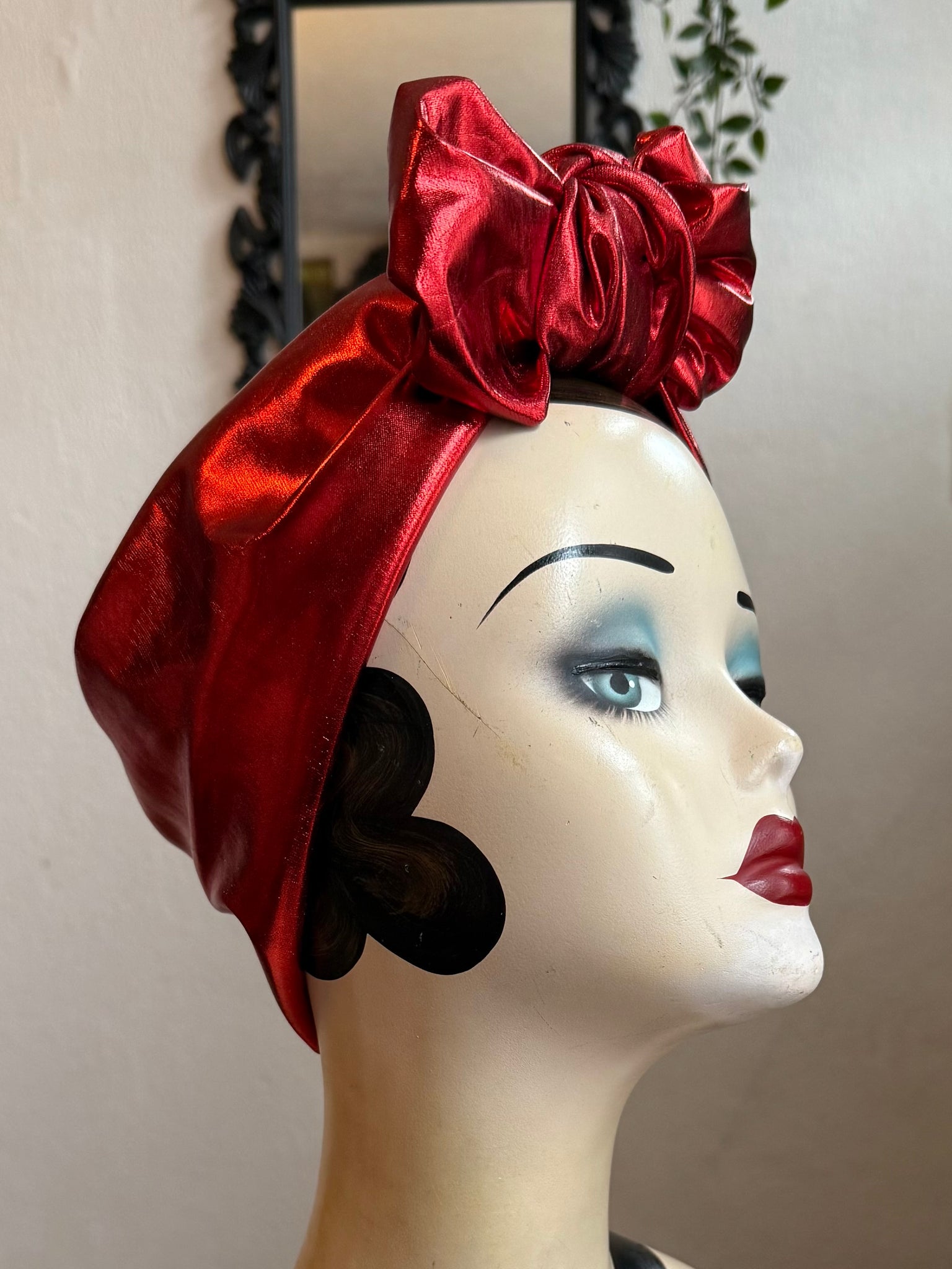 WORKWEAR KNOT Vintage Style Pre-tied Headband in Metallic Red