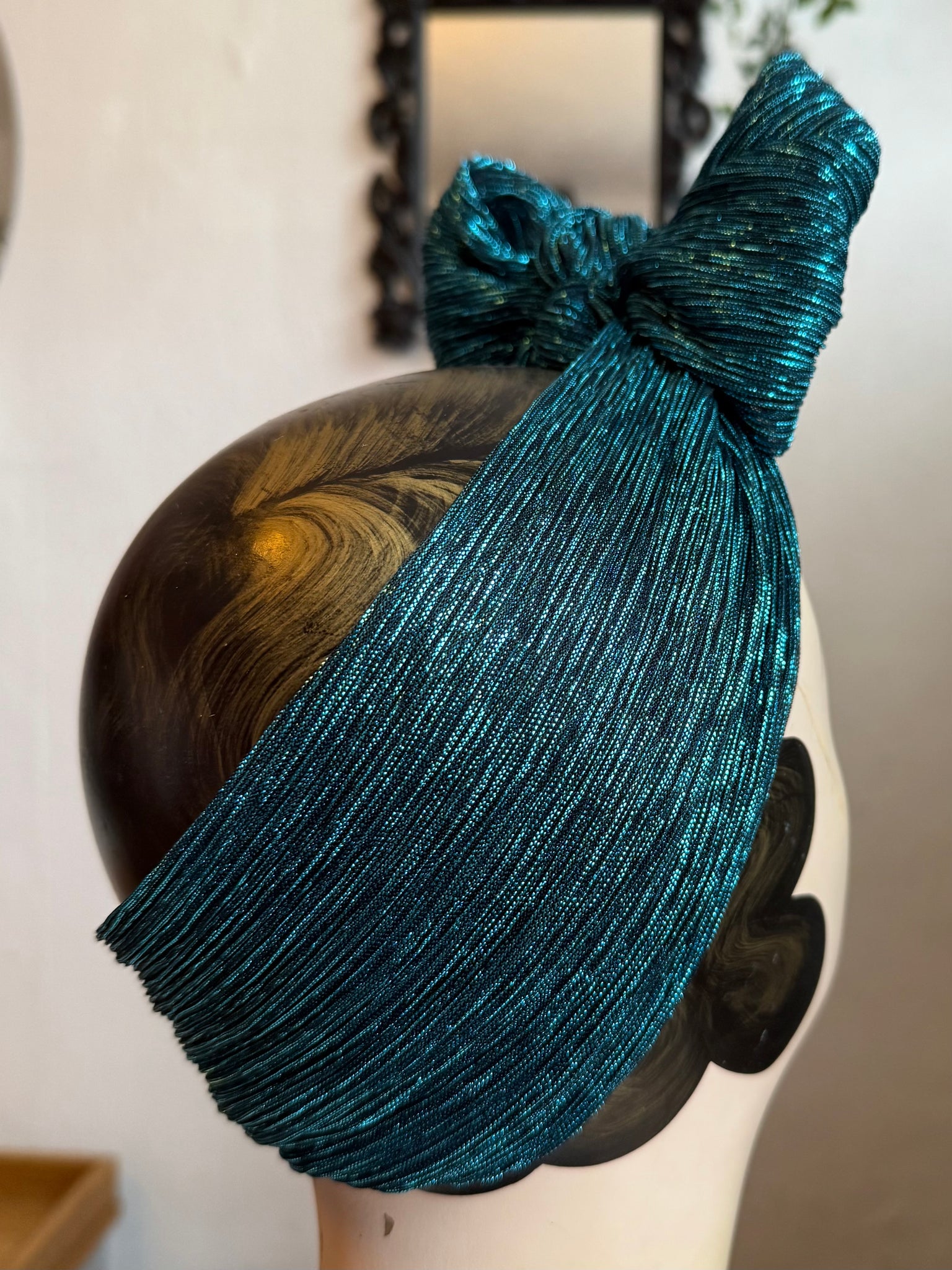 WORKWEAR KNOT Vintage Style Pre-tied Headband in Metallic Blue/Teal